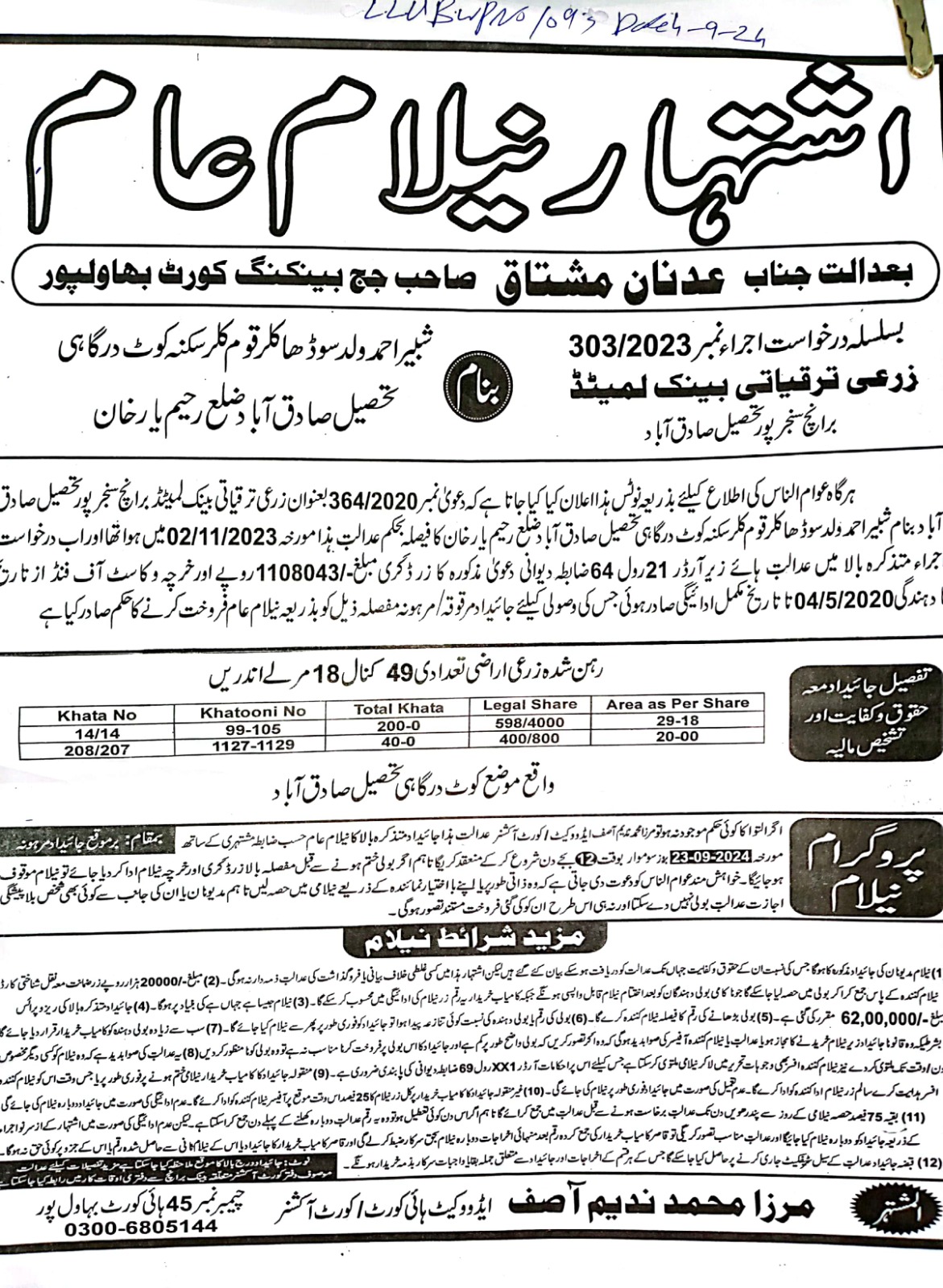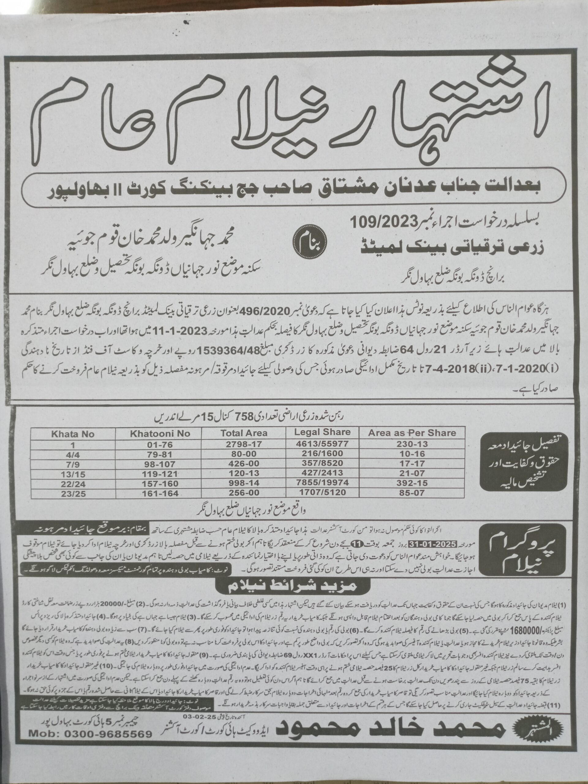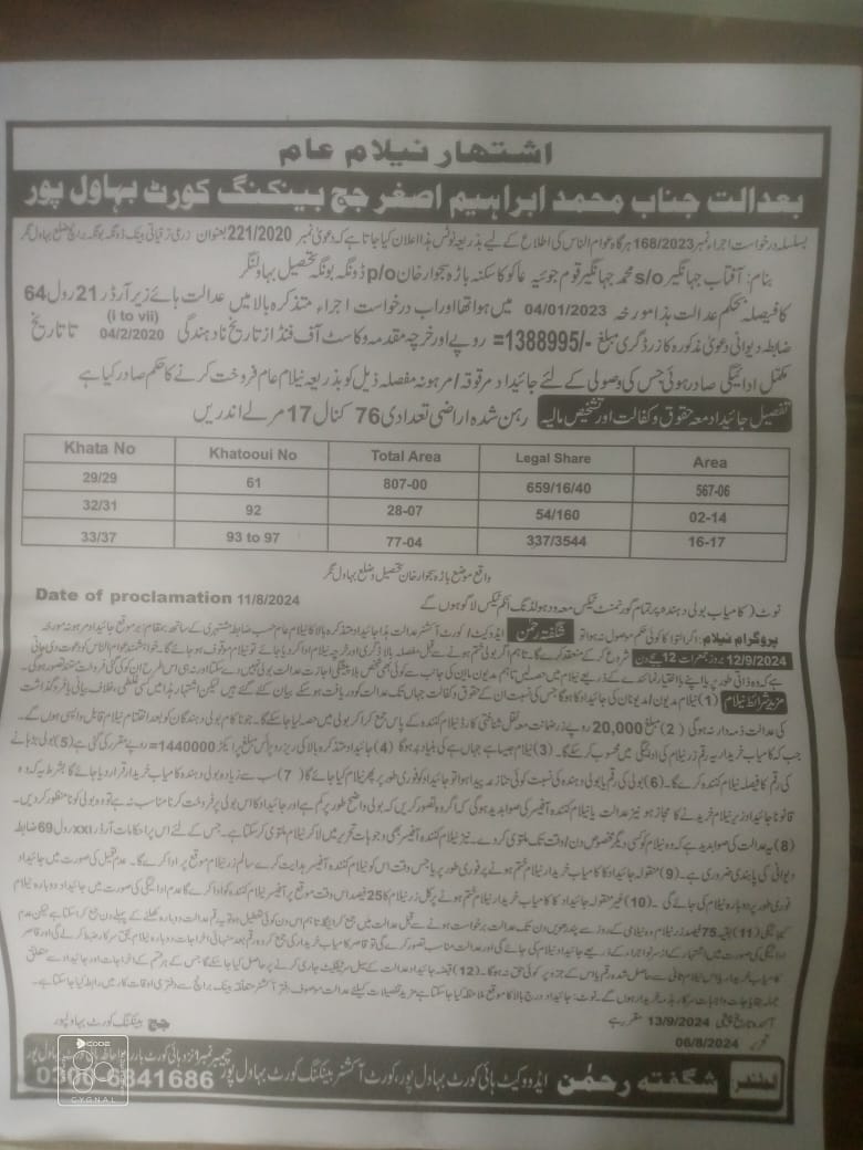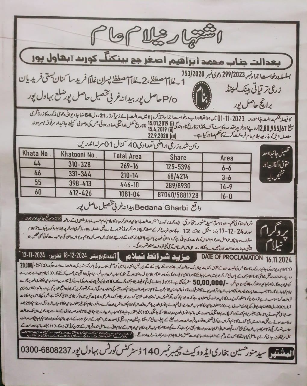 6. خانپورماہر برانچ کی عوامی نیلامی پینافیلکس