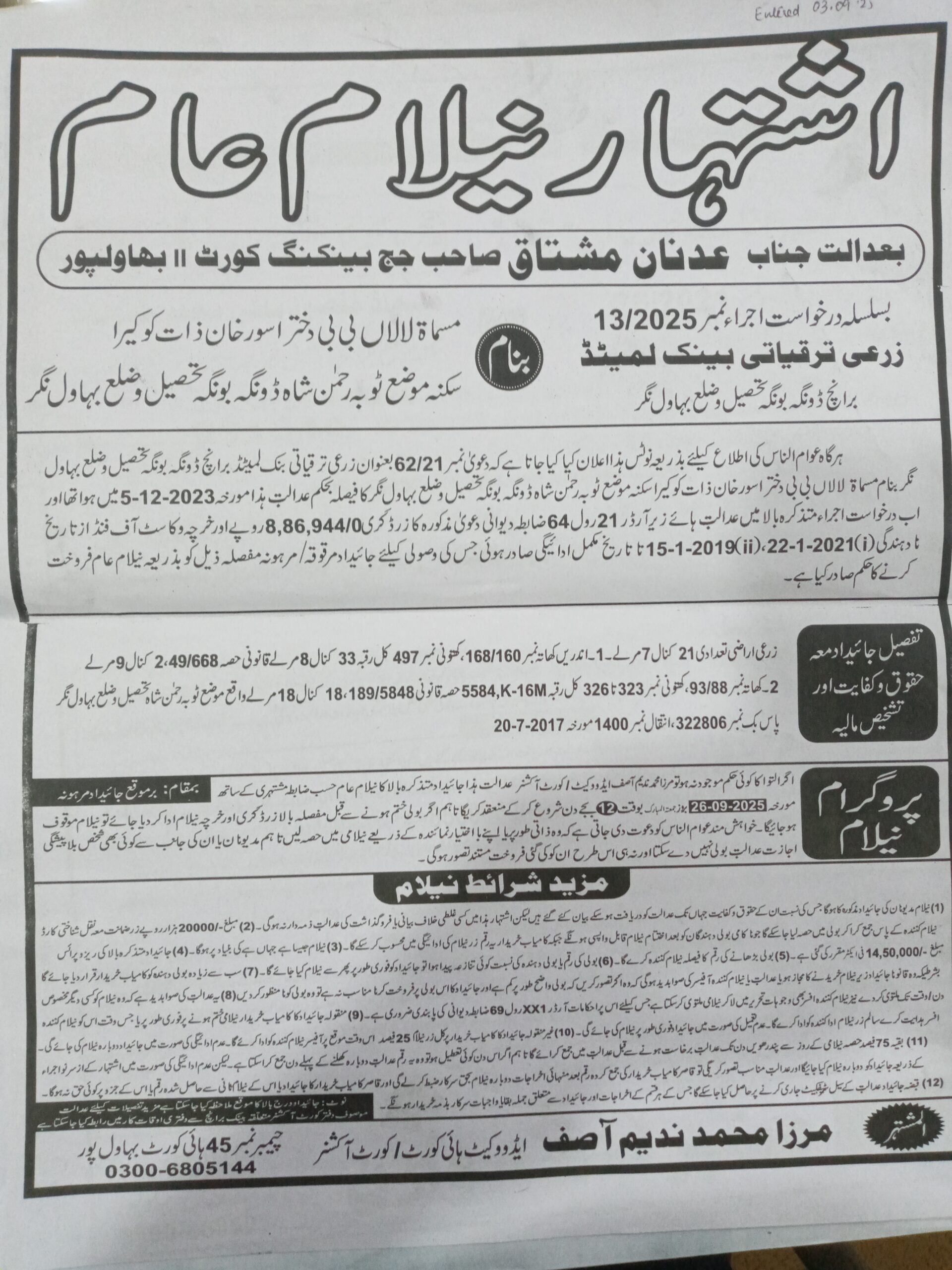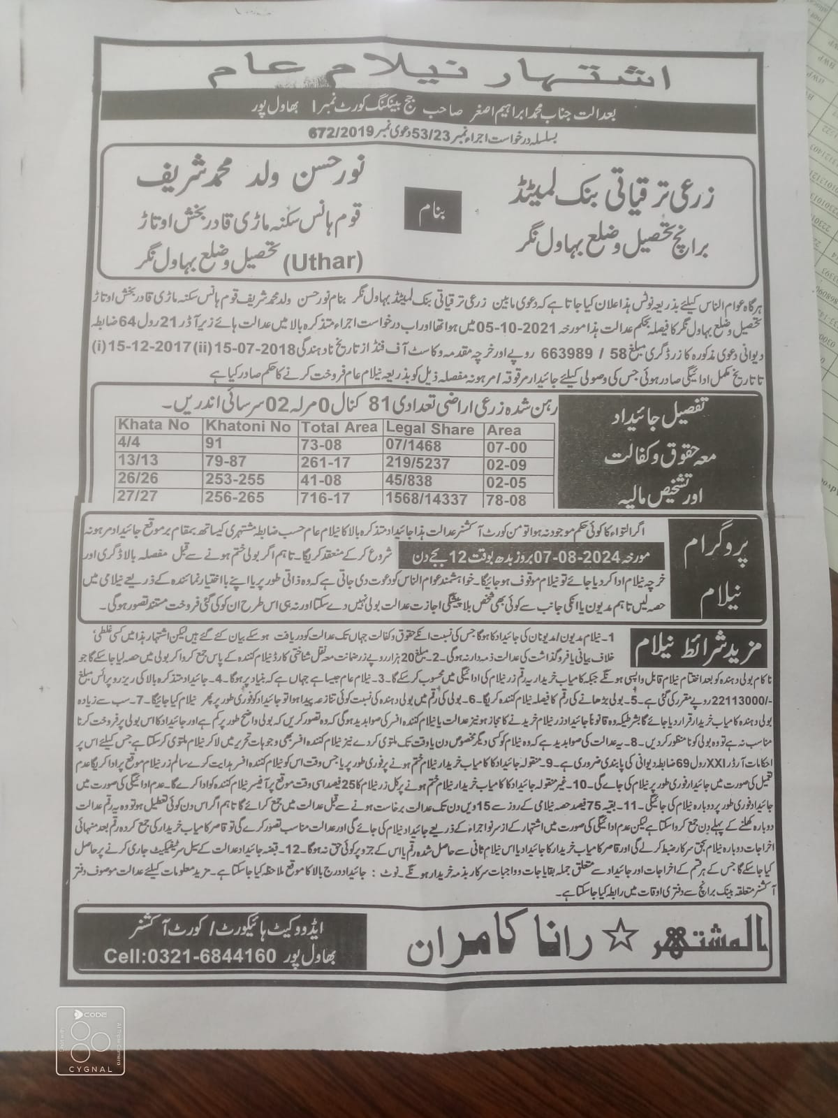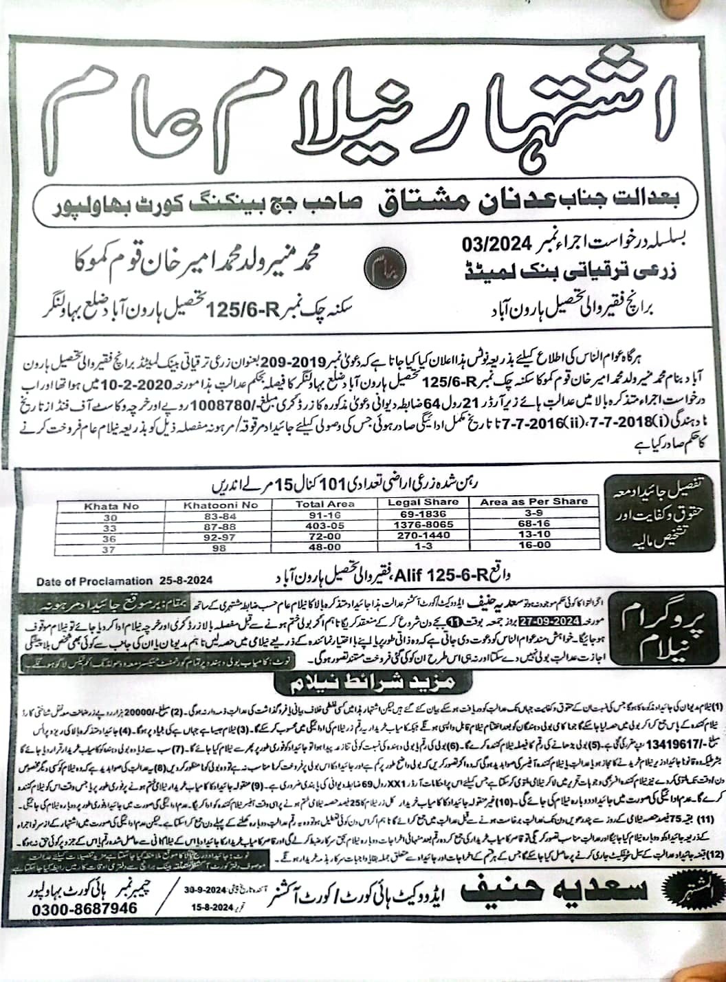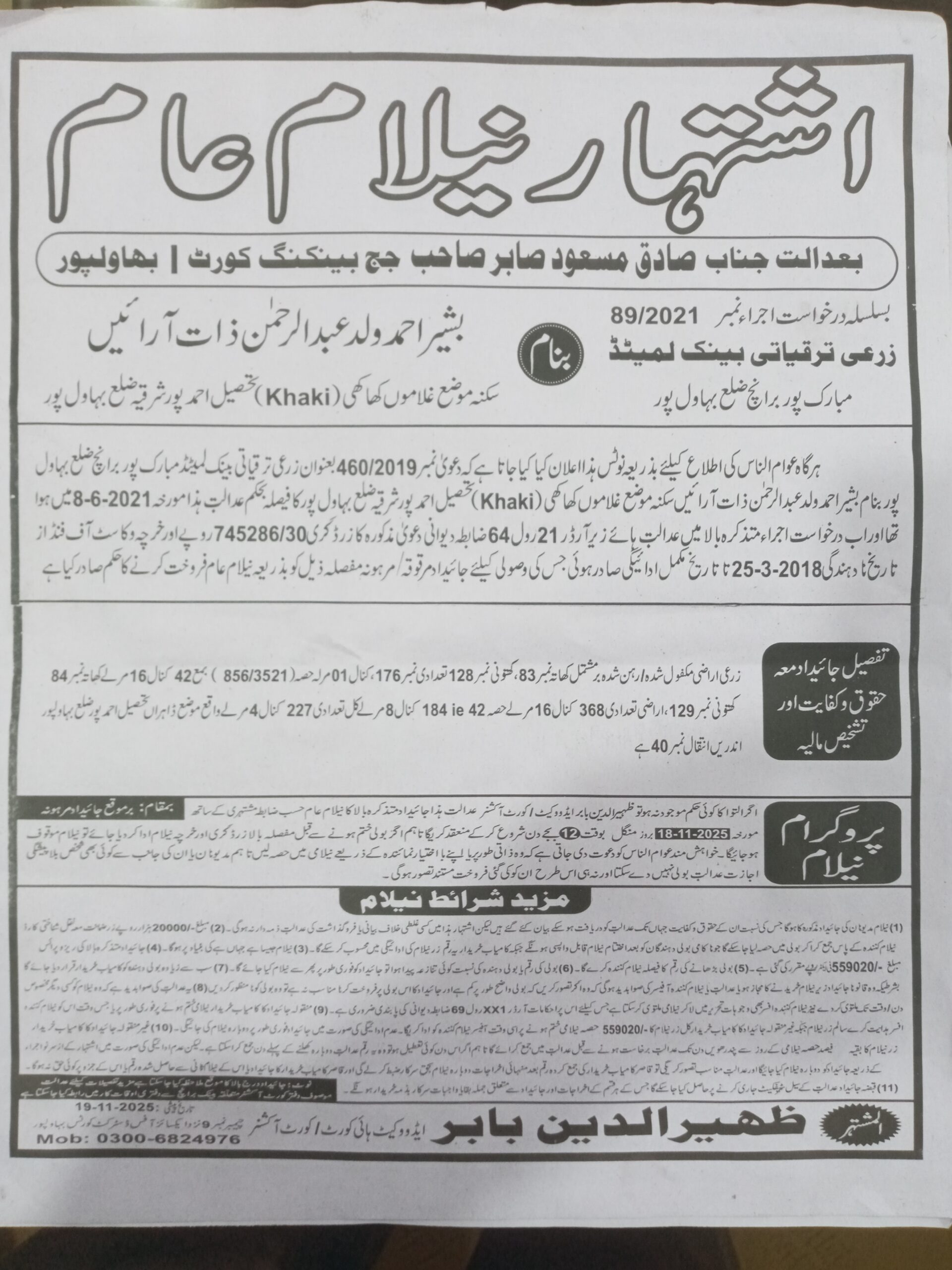 6. خانپورماہر برانچ کی عوامی نیلامی پینافیلکس