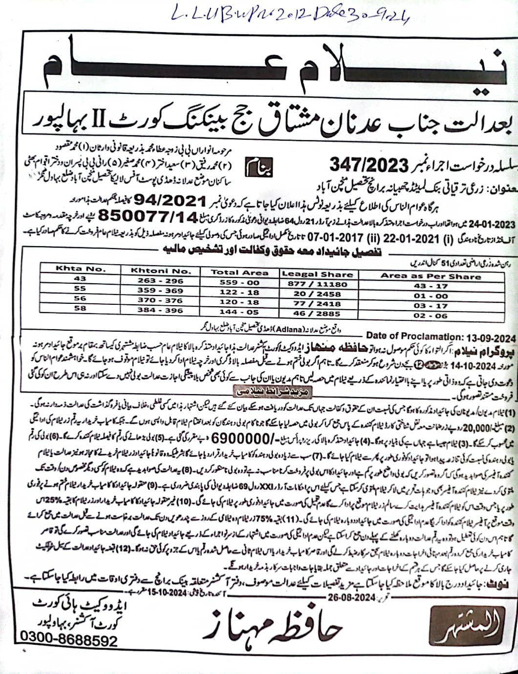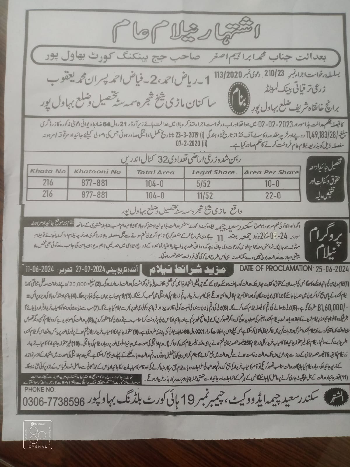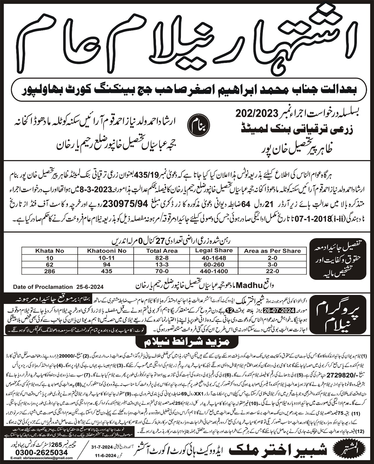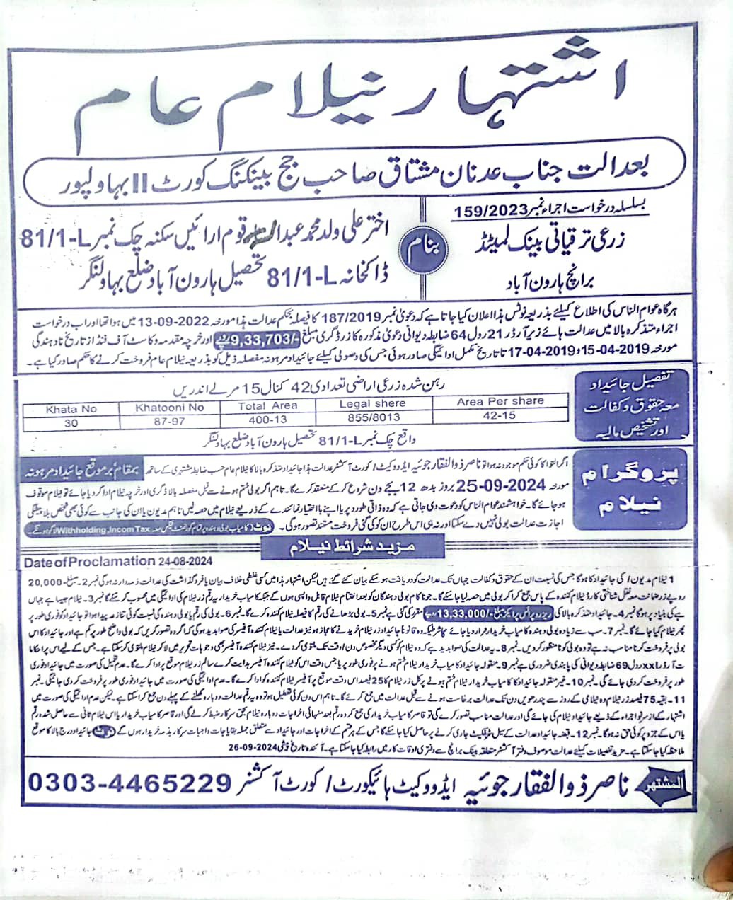 6. خانپورماہر برانچ کی عوامی نیلامی پینافیلکس