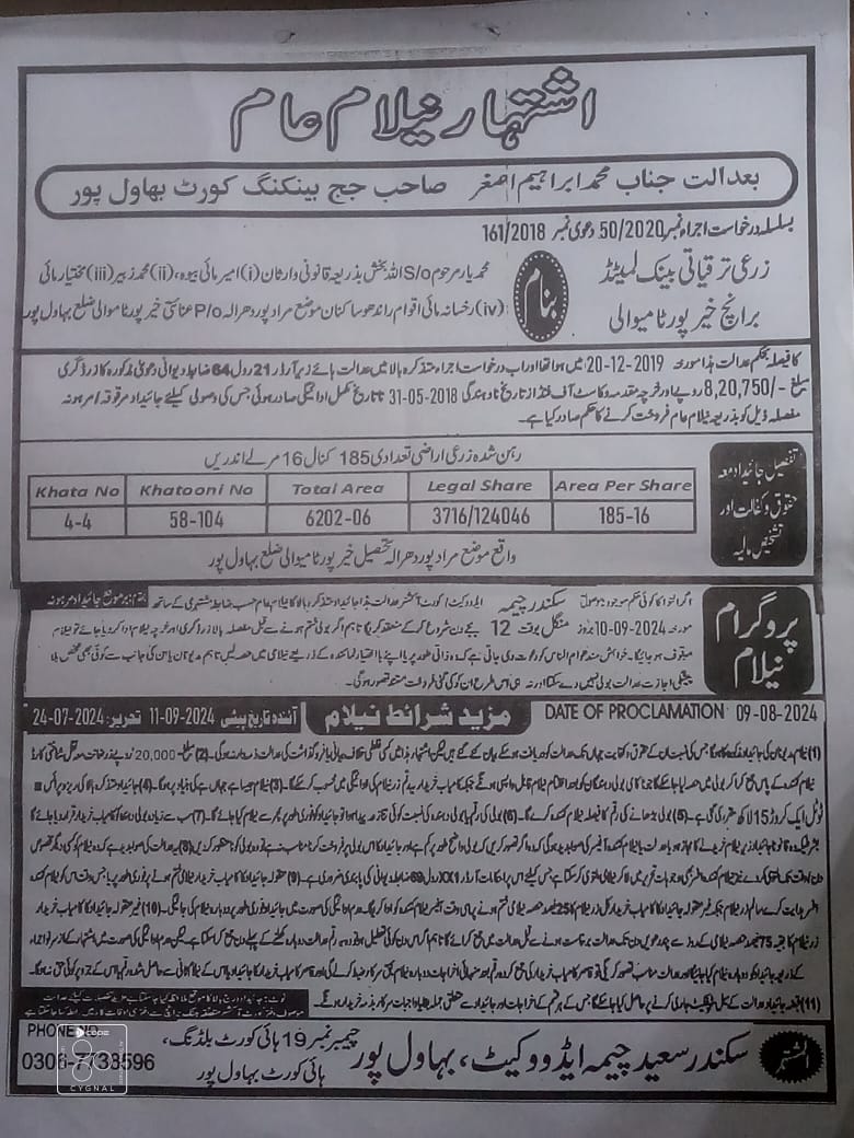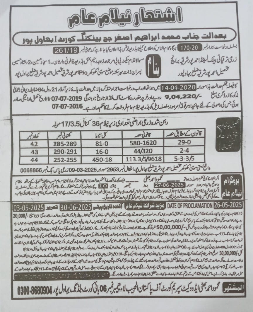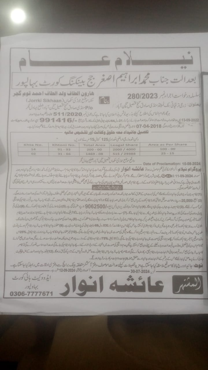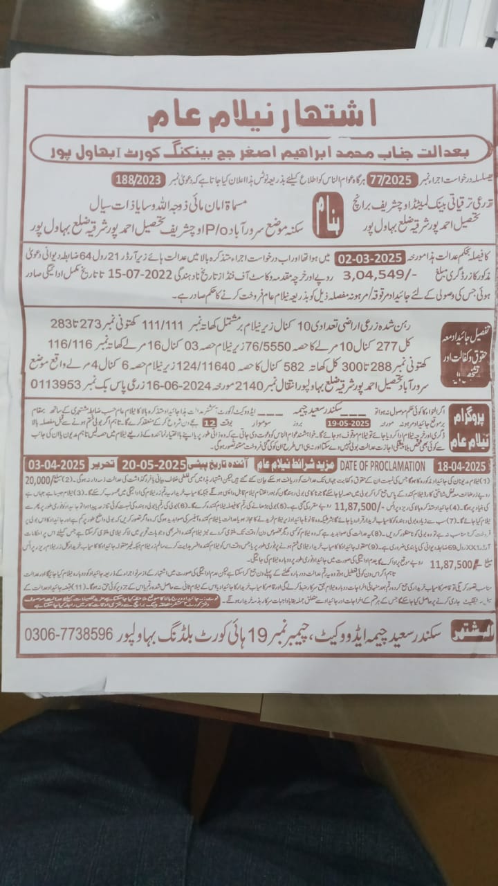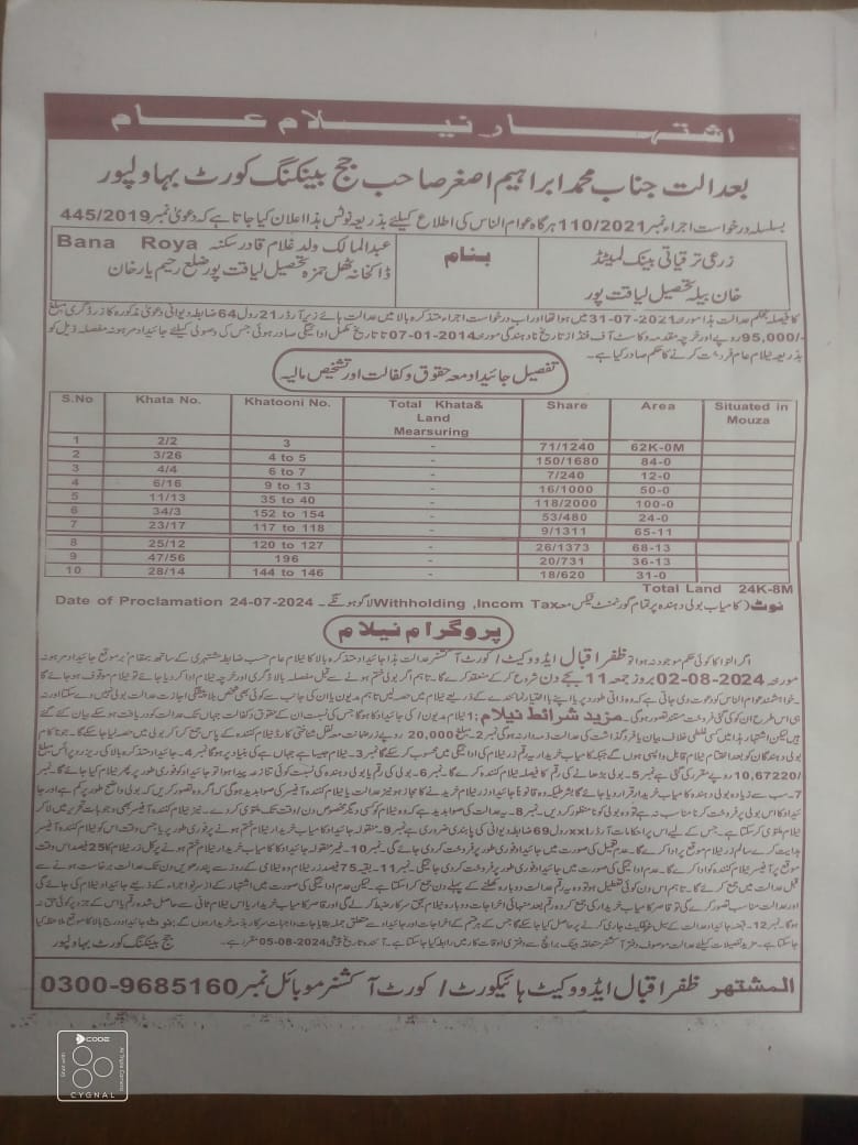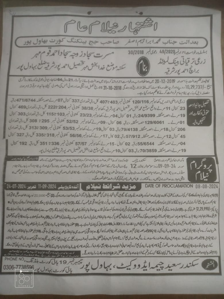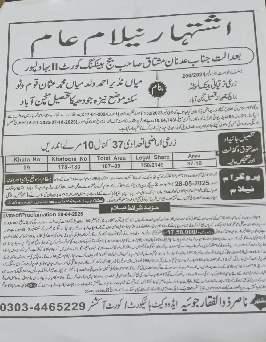 7. خانپورماہر برانچ کی عوامی نیلامی پینافیلکس