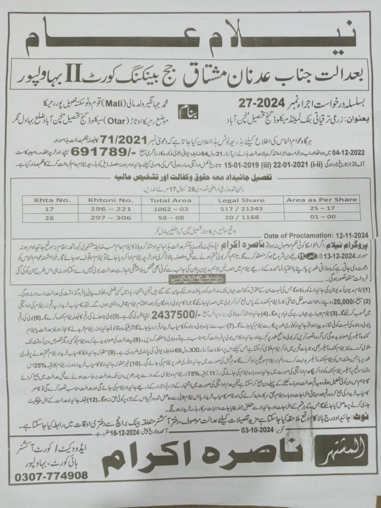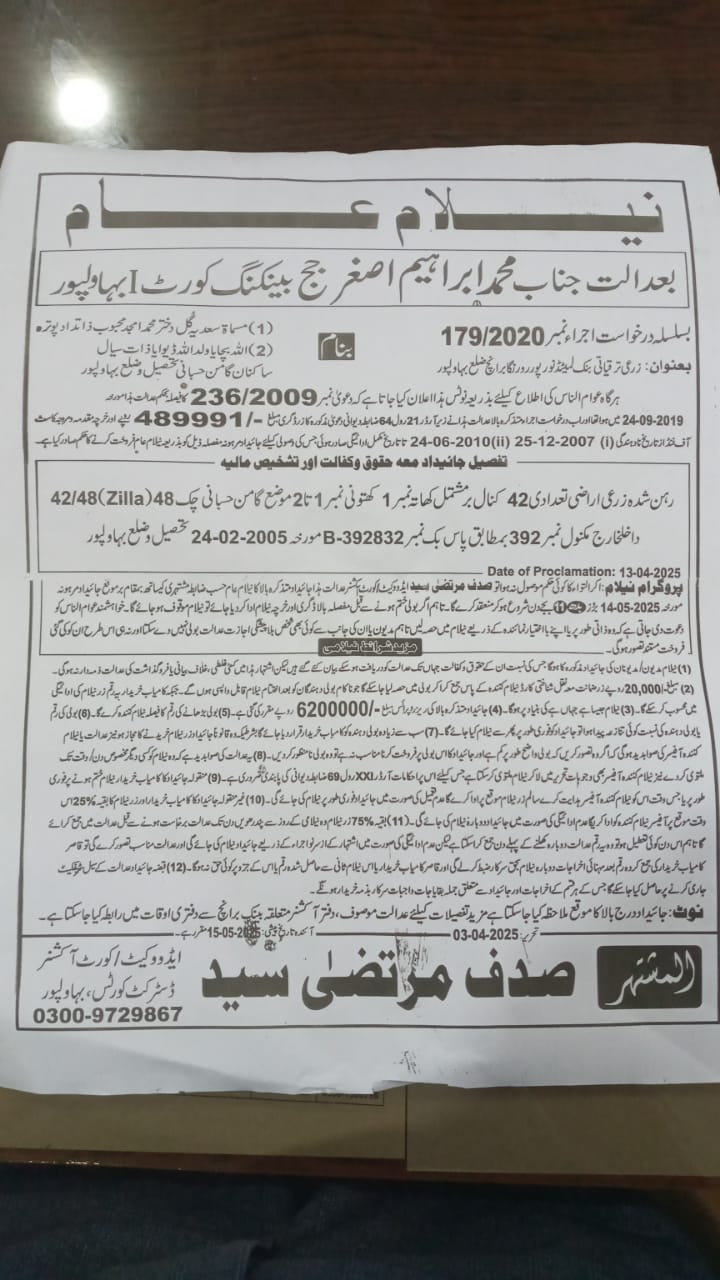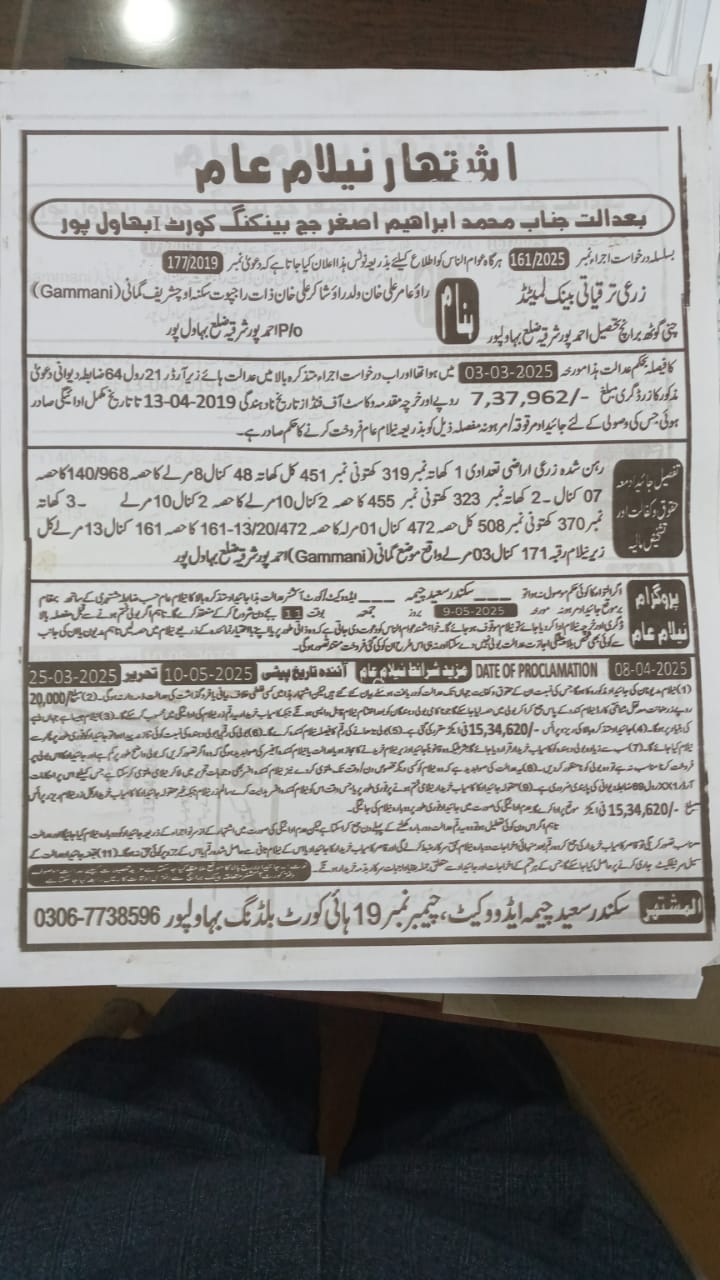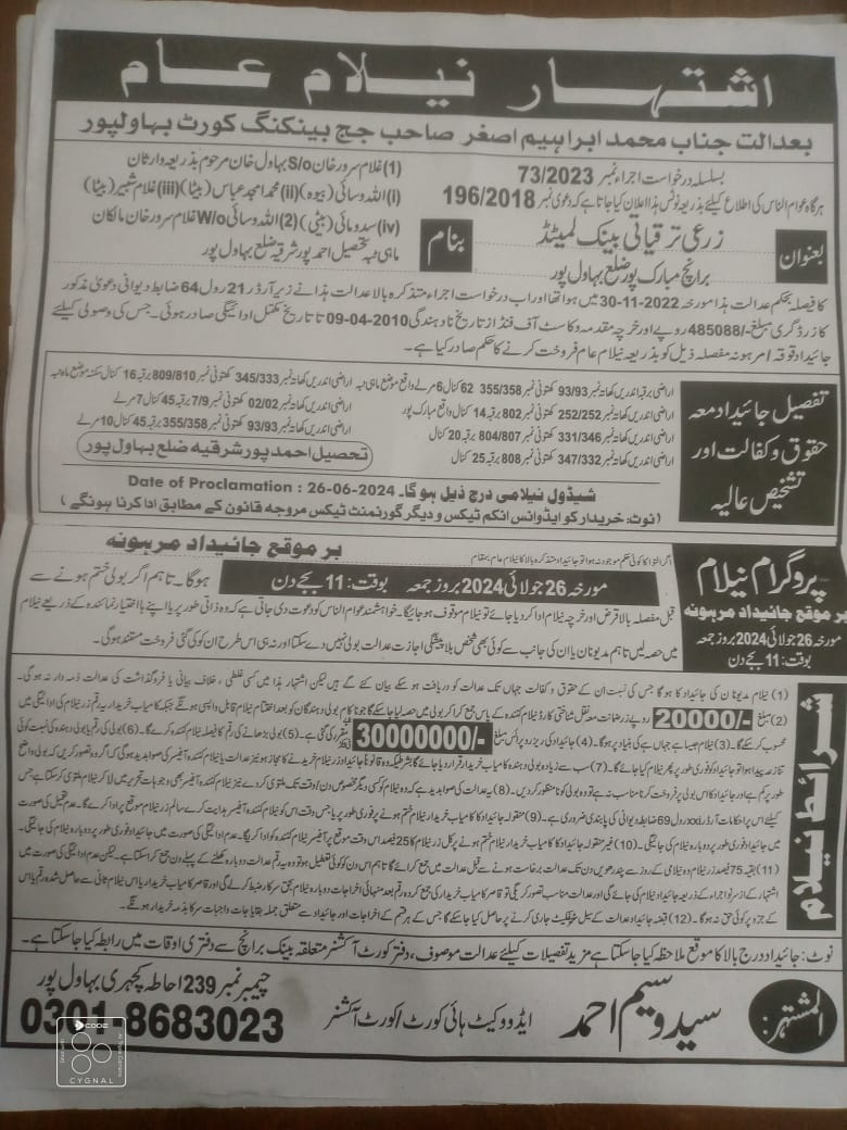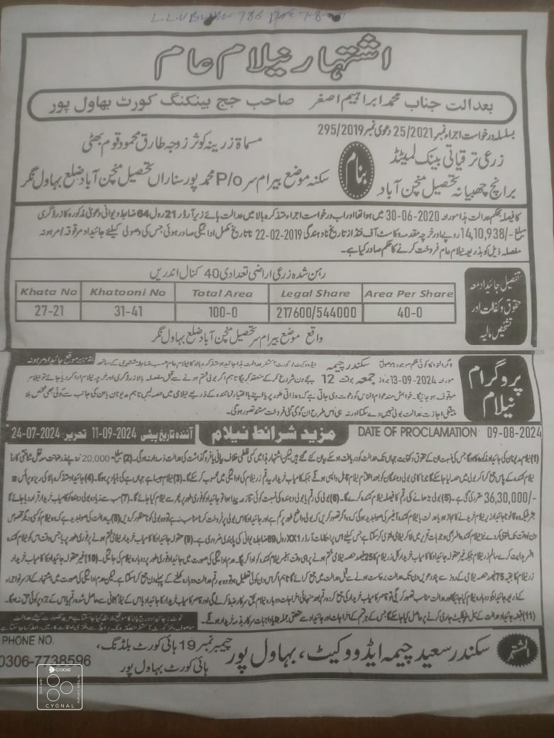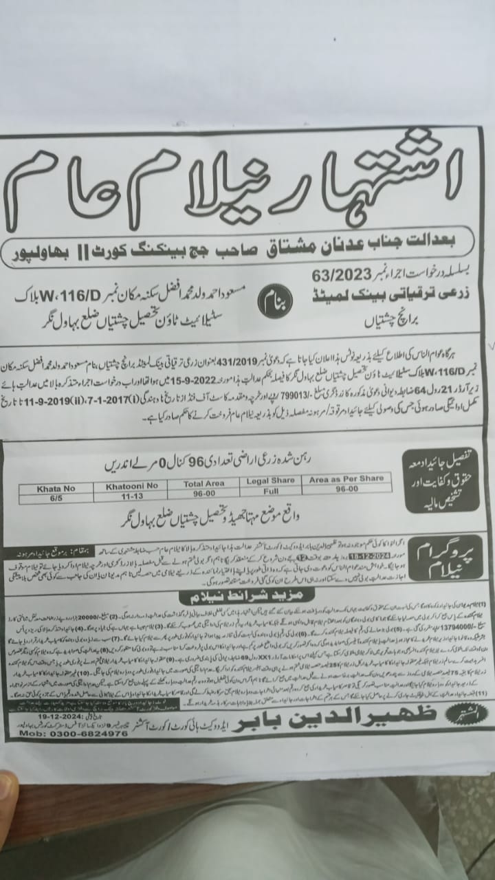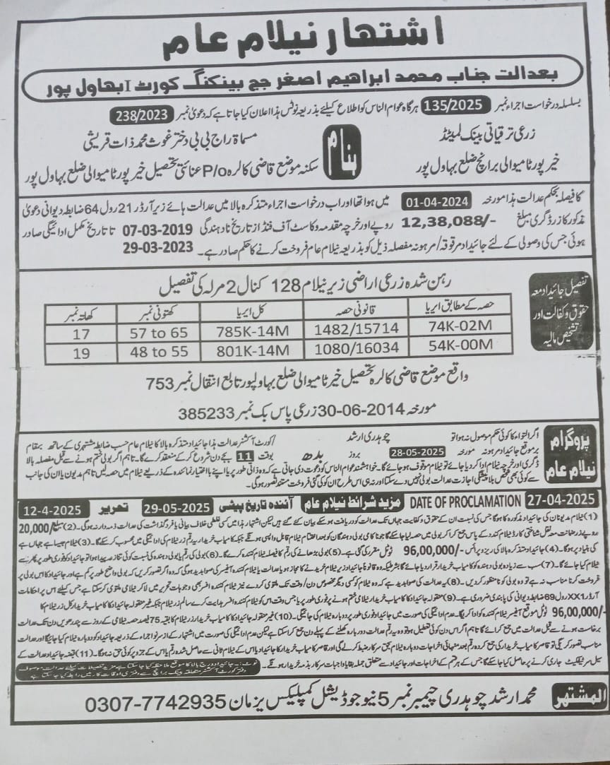 7. خانپورماہر برانچ کی عوامی نیلامی پینافیلکس