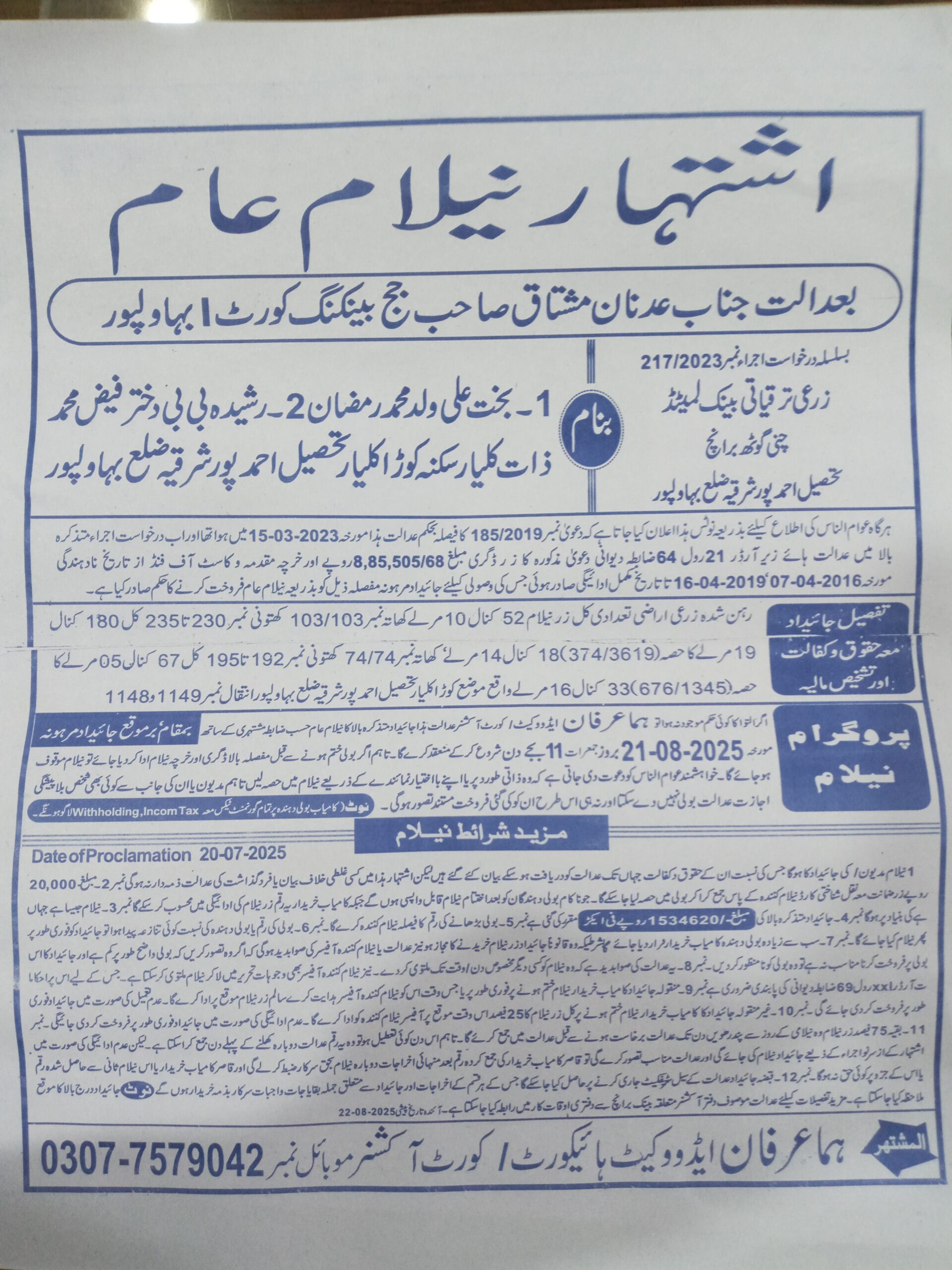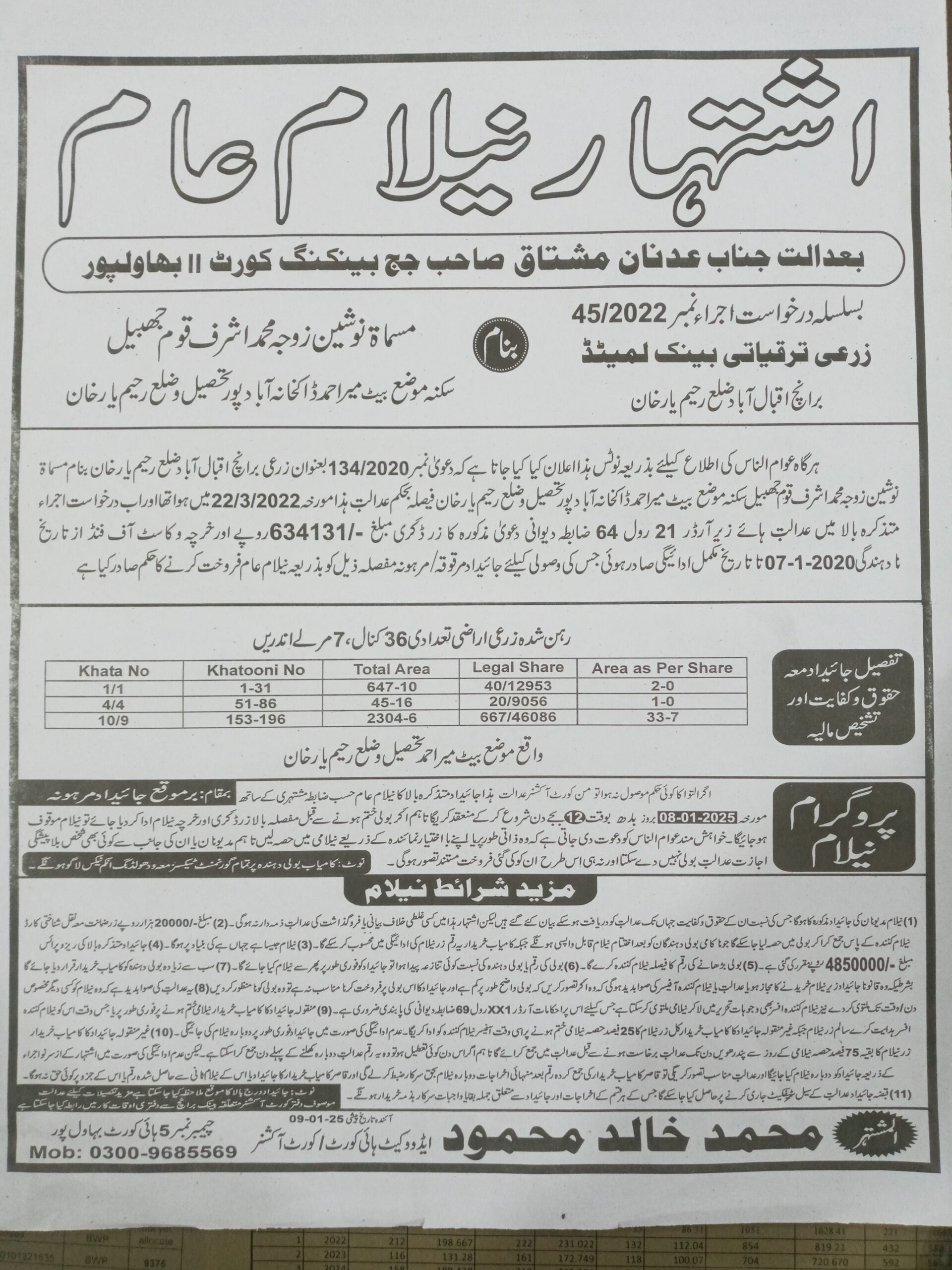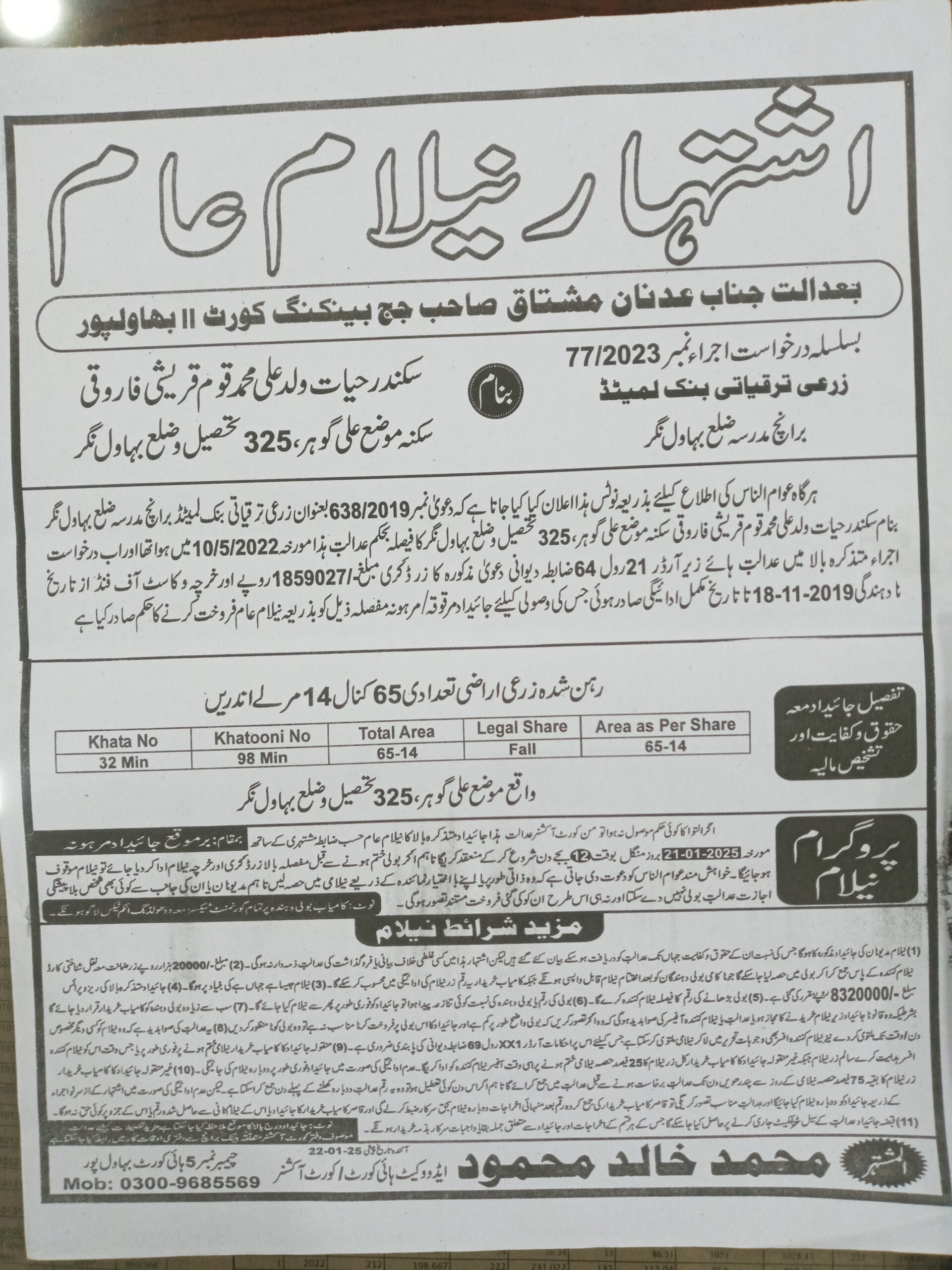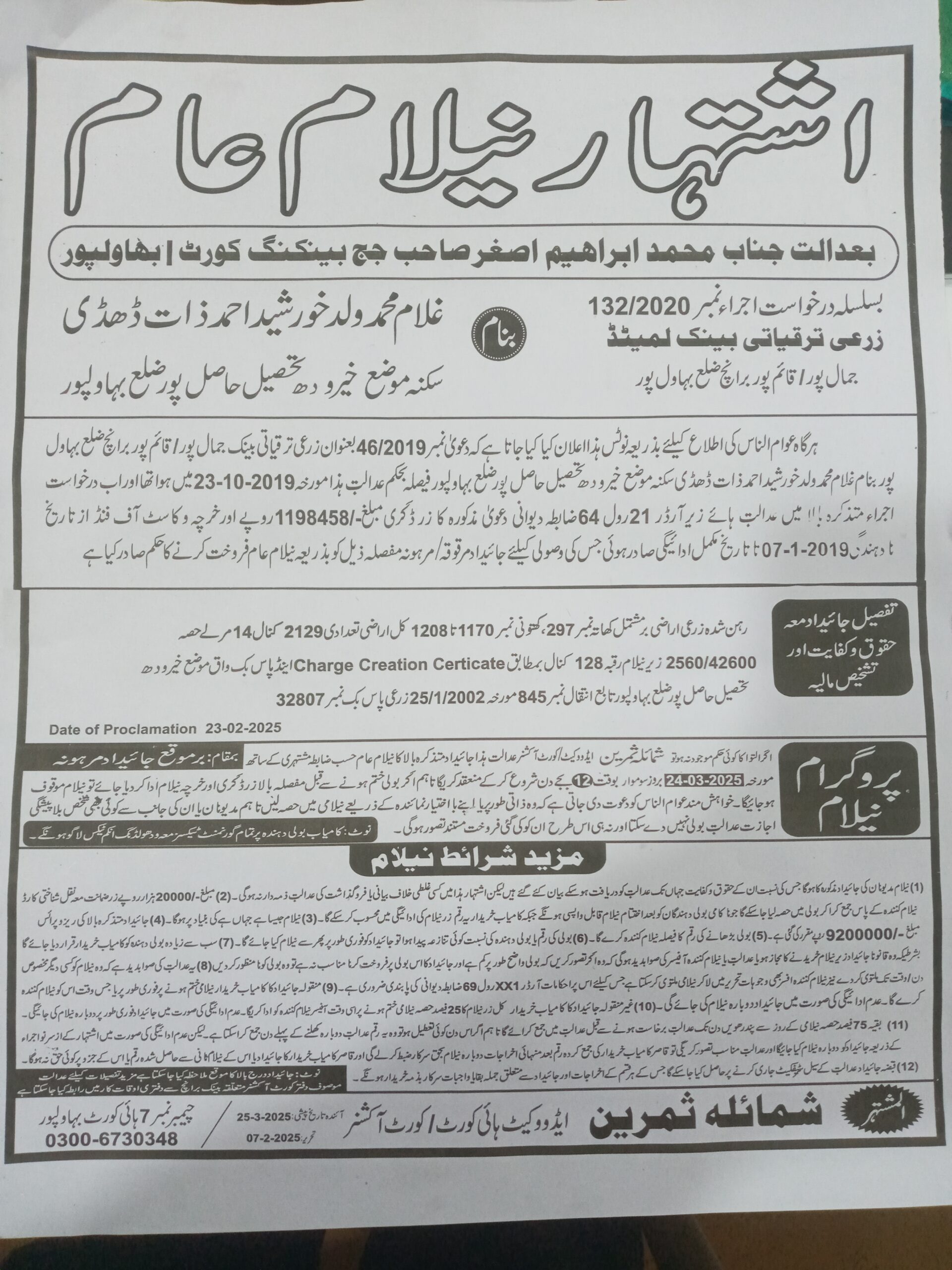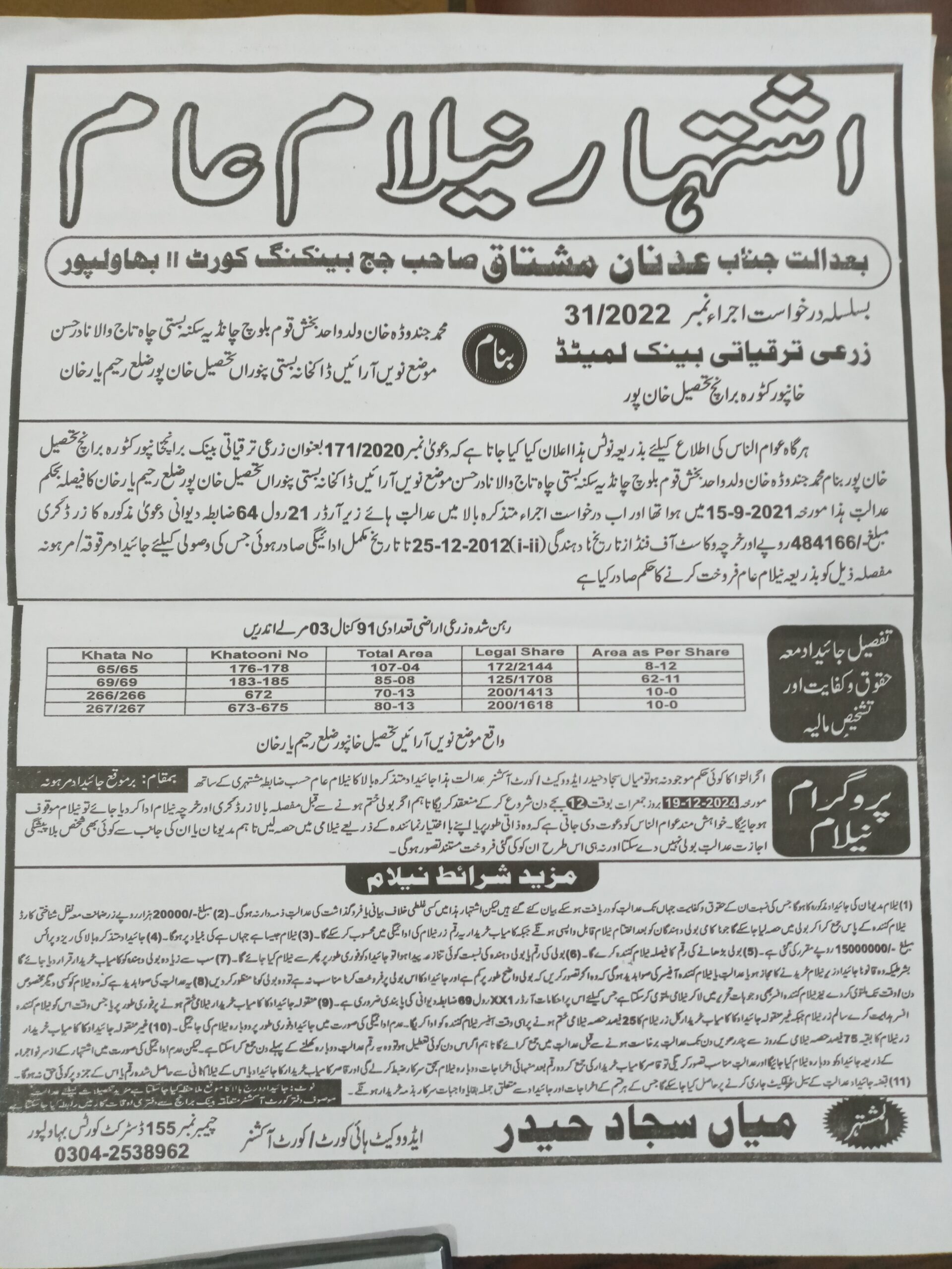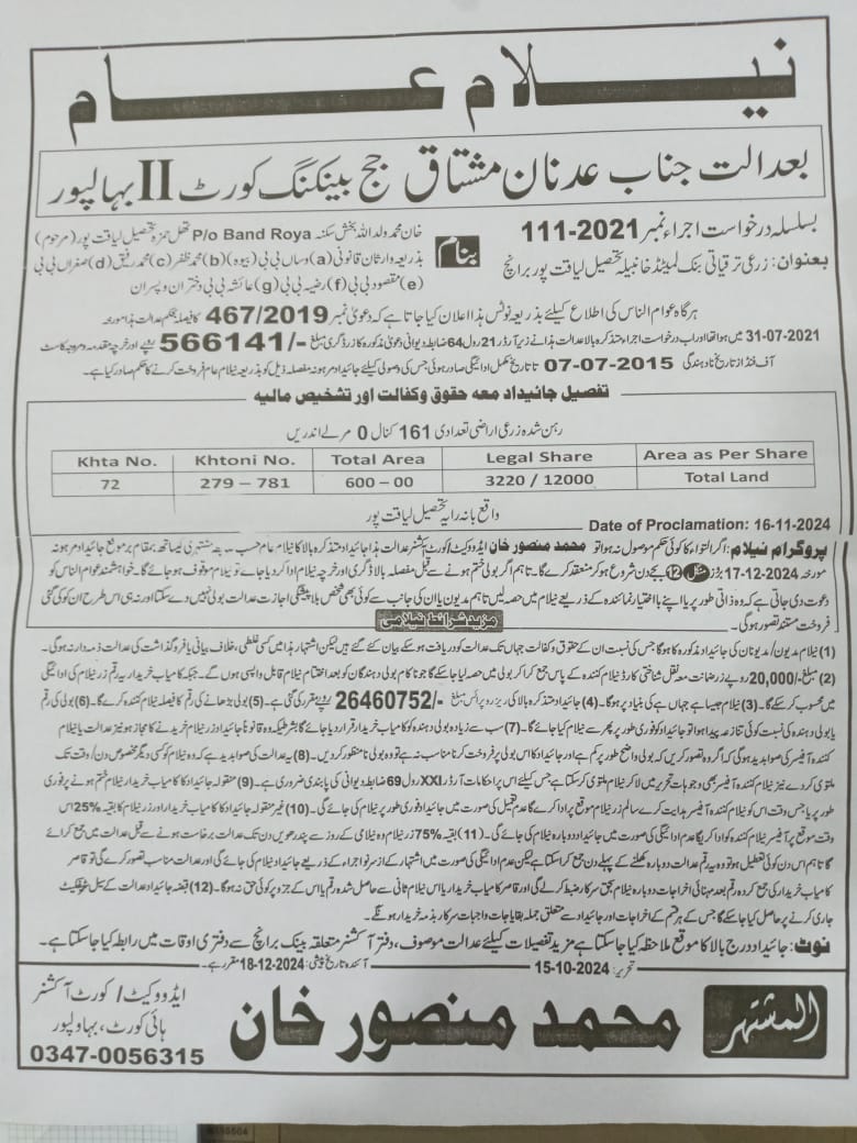 7. خانپورماہر برانچ کی عوامی نیلامی پینافیلکس