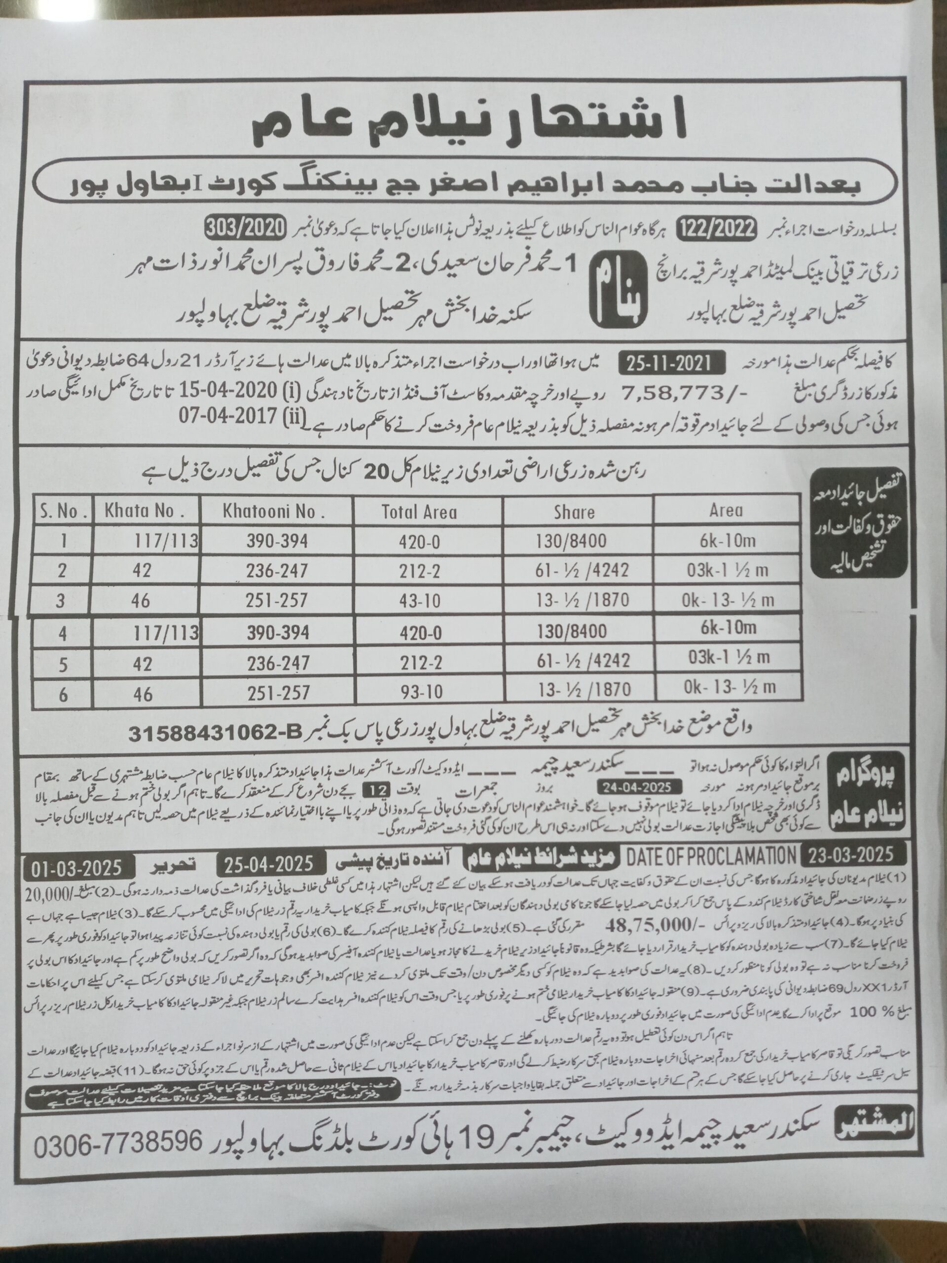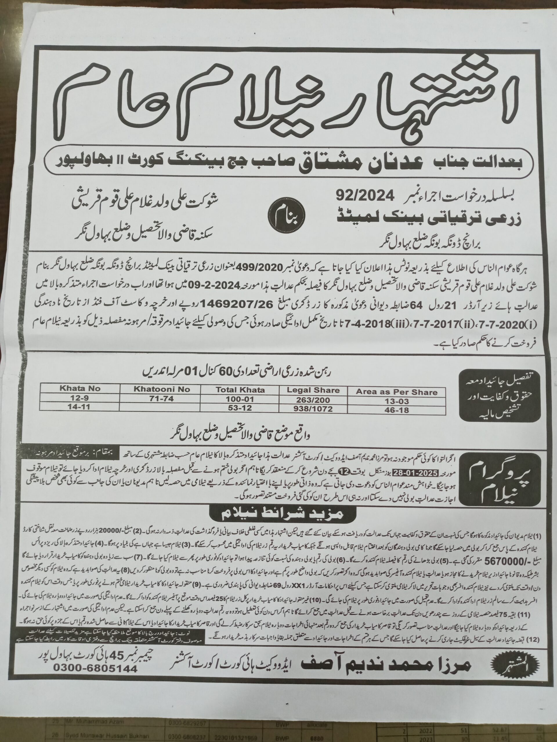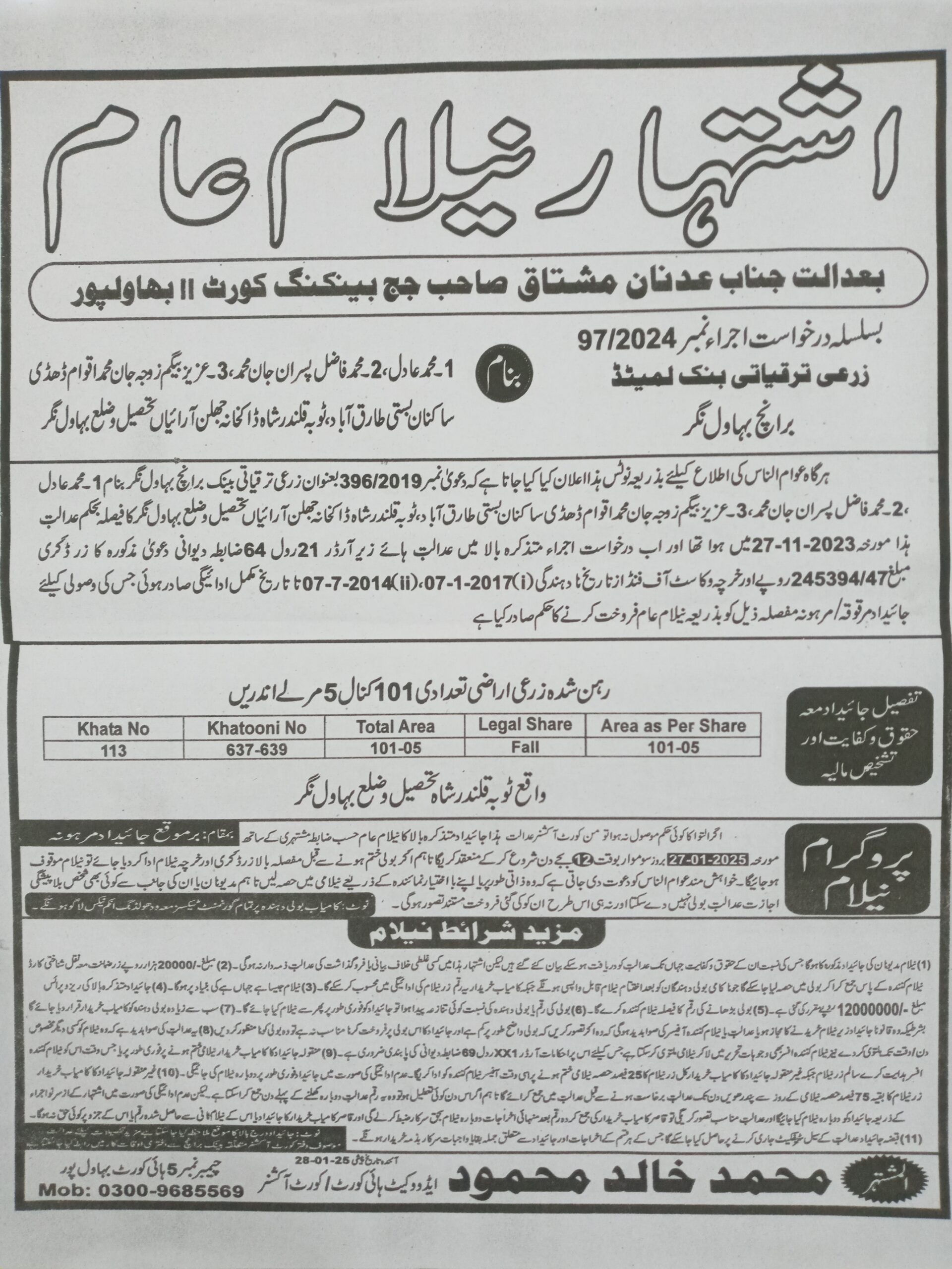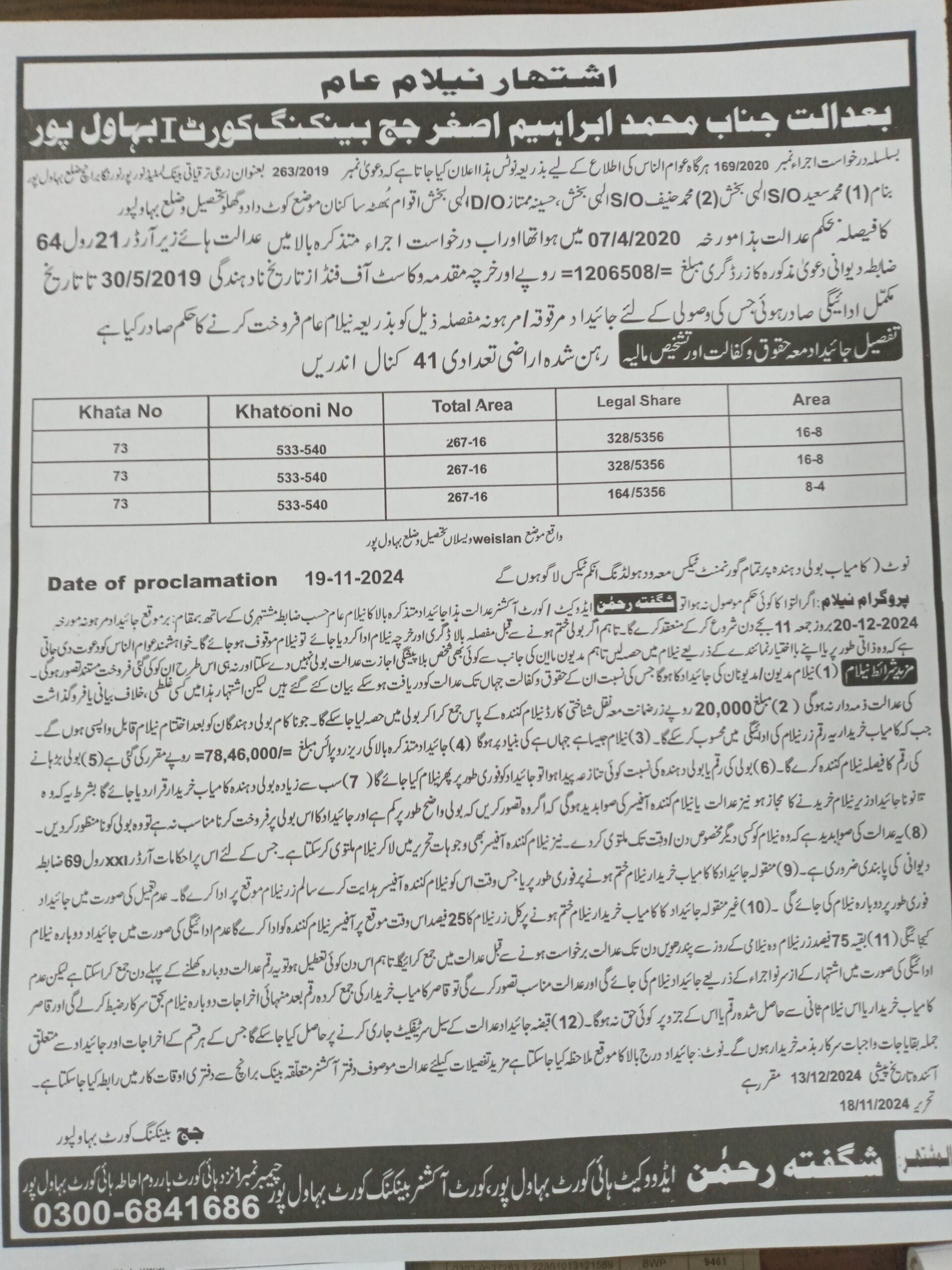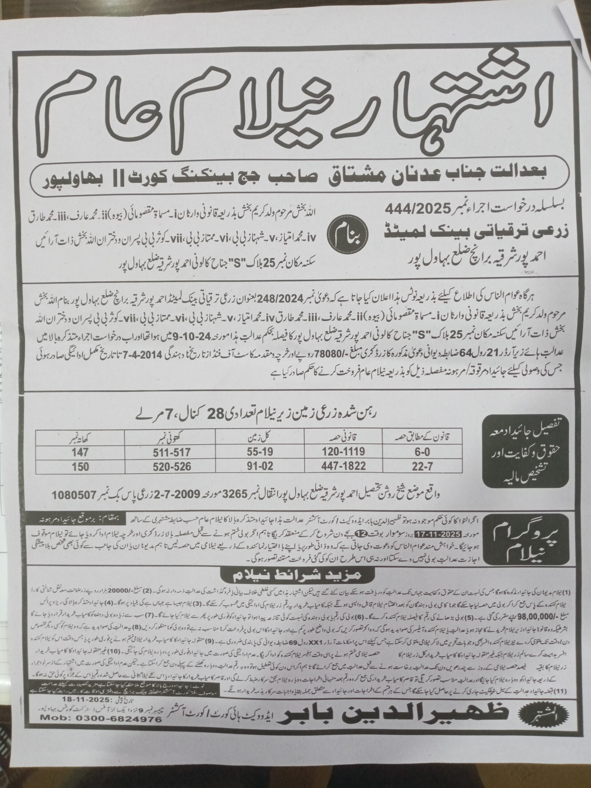 7. خانپورماہر برانچ کی عوامی نیلامی پینافیلکس