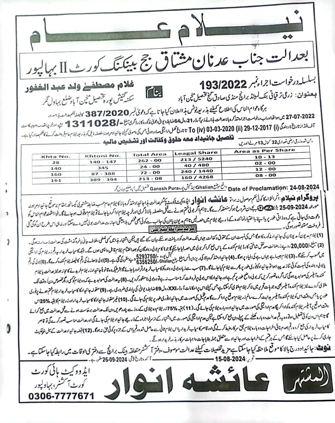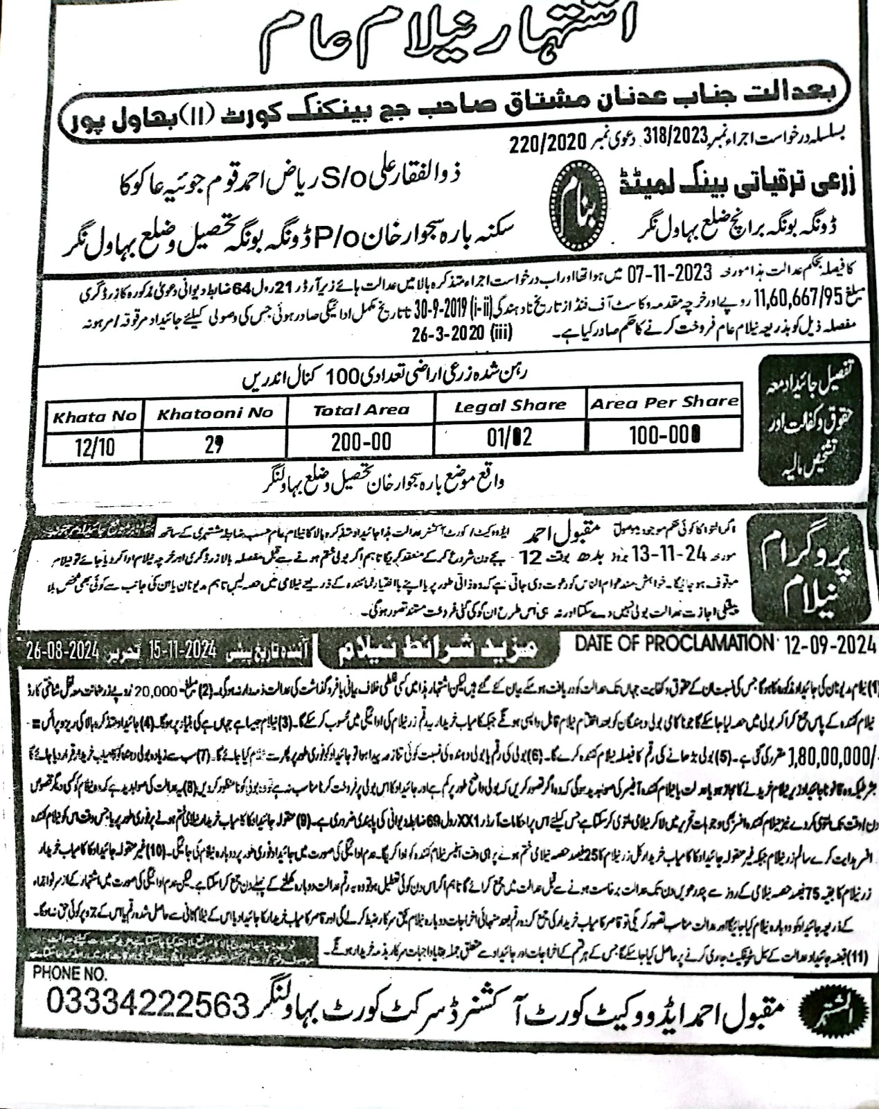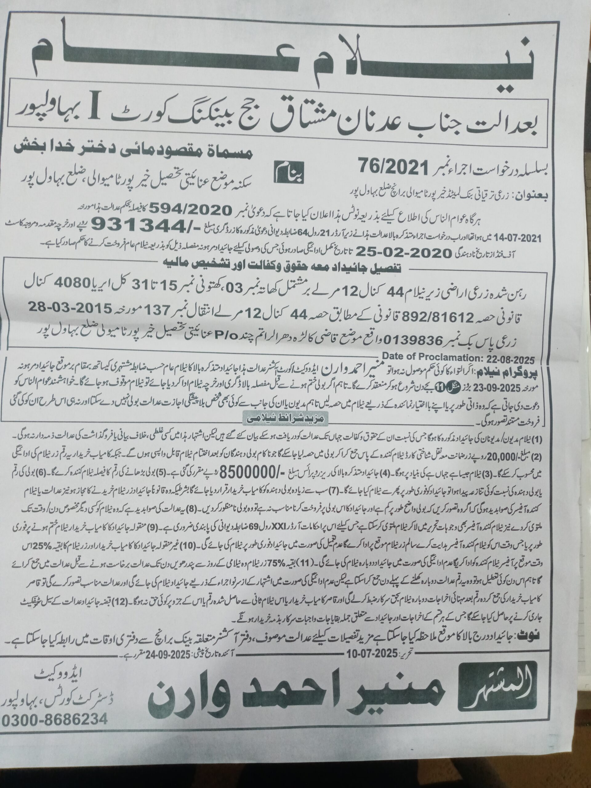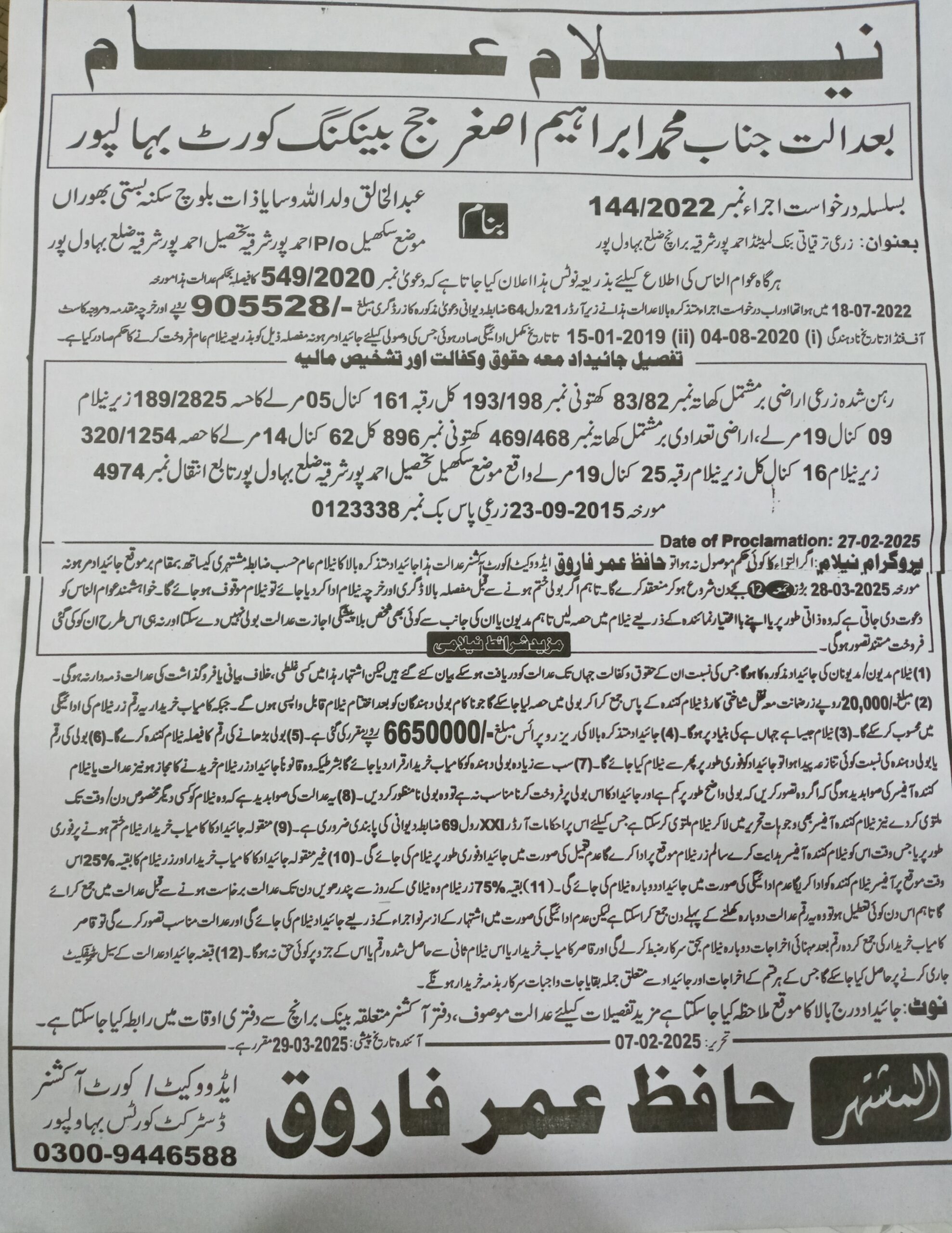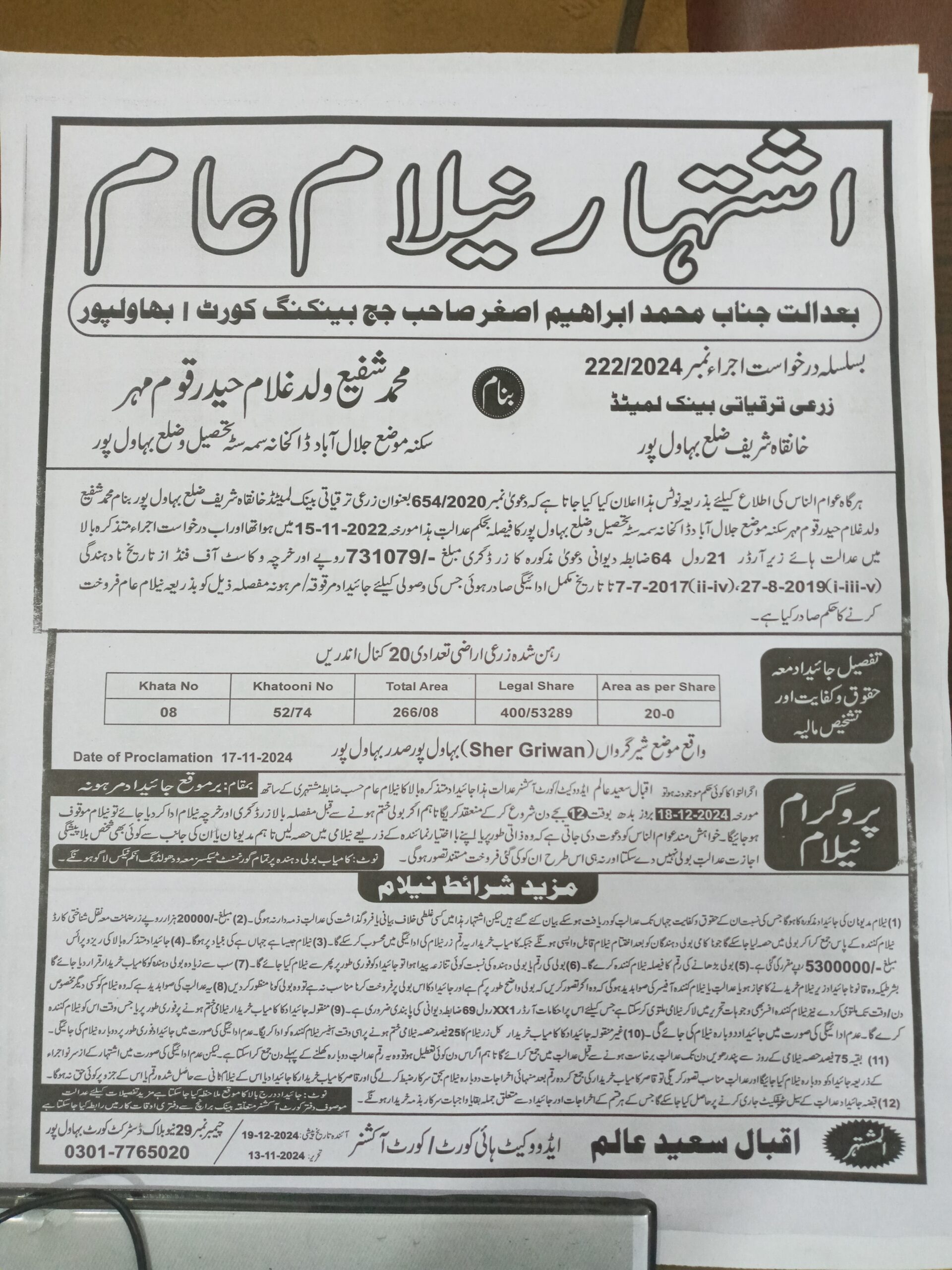 7. خانپورماہر برانچ کی عوامی نیلامی پینافیلکس