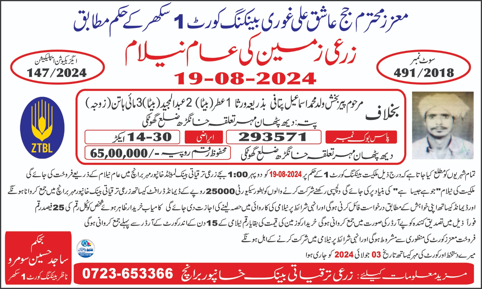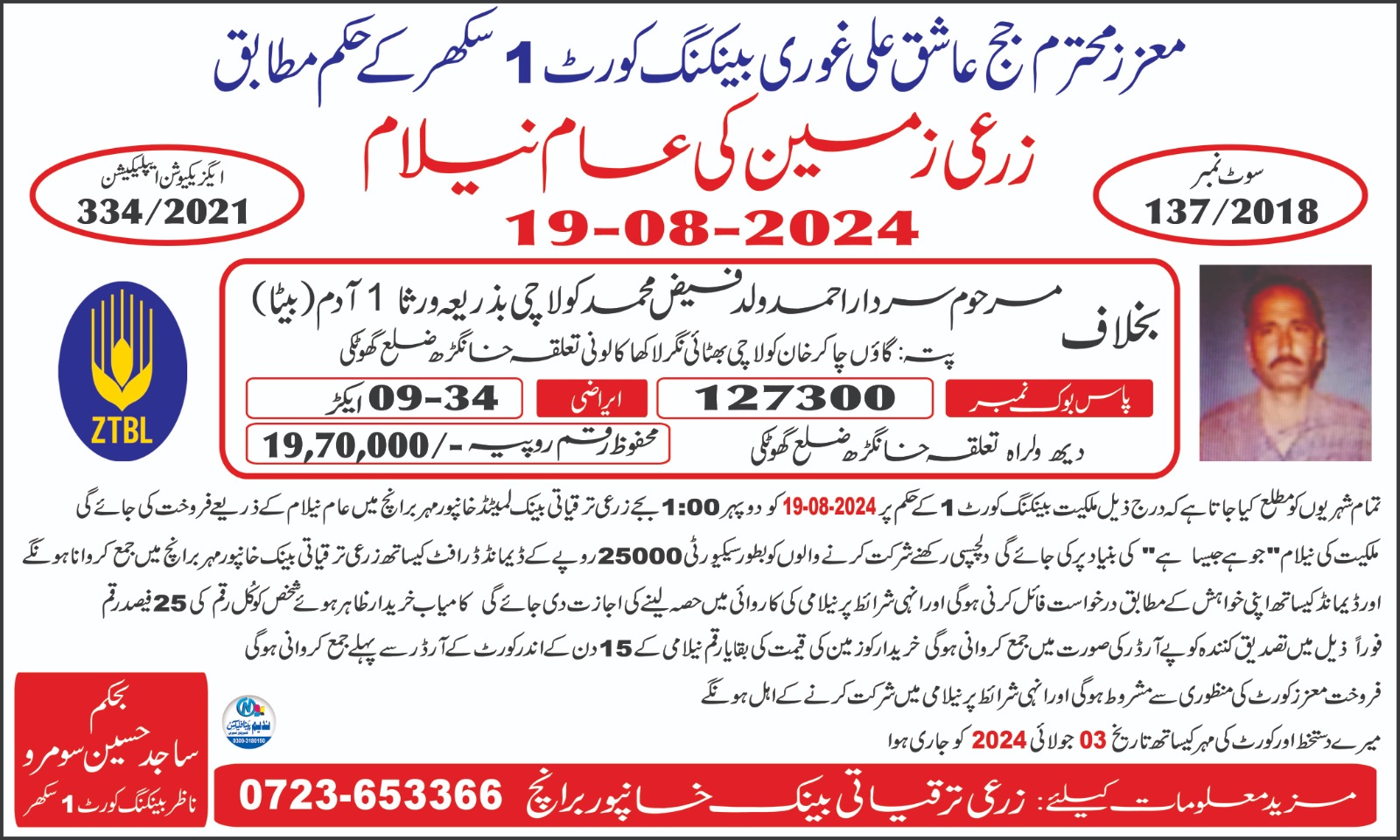 114. ZTBL سنجر پور برانچ بمقابلہ مطیع اللہ اور اعجاز احمد ولد محمد نواز [19-جولائی-2024]