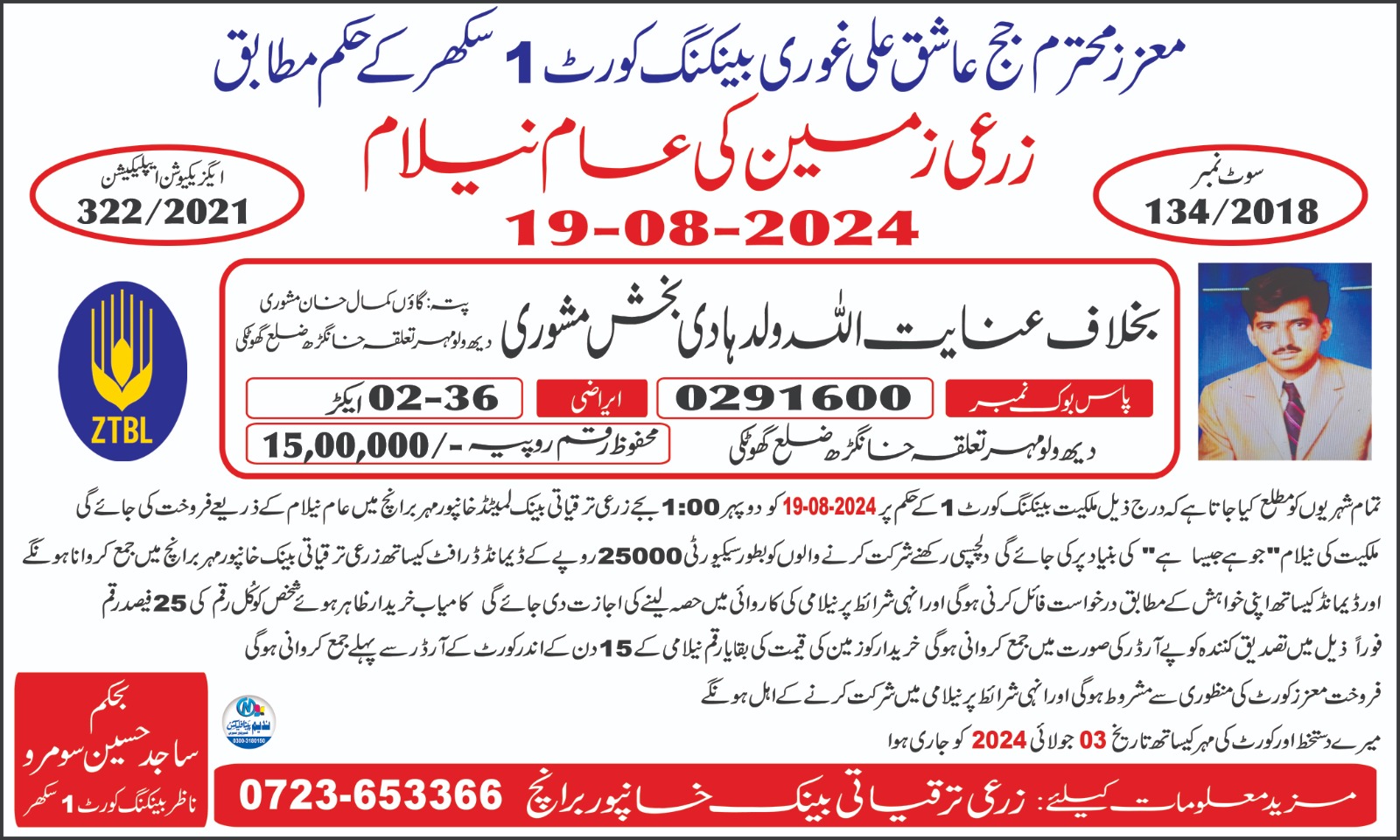 134. ZTBL سوئی والا برانچ بمقابلہ مولانا حسین ولد اللہ بخش [22 مئی 2024]