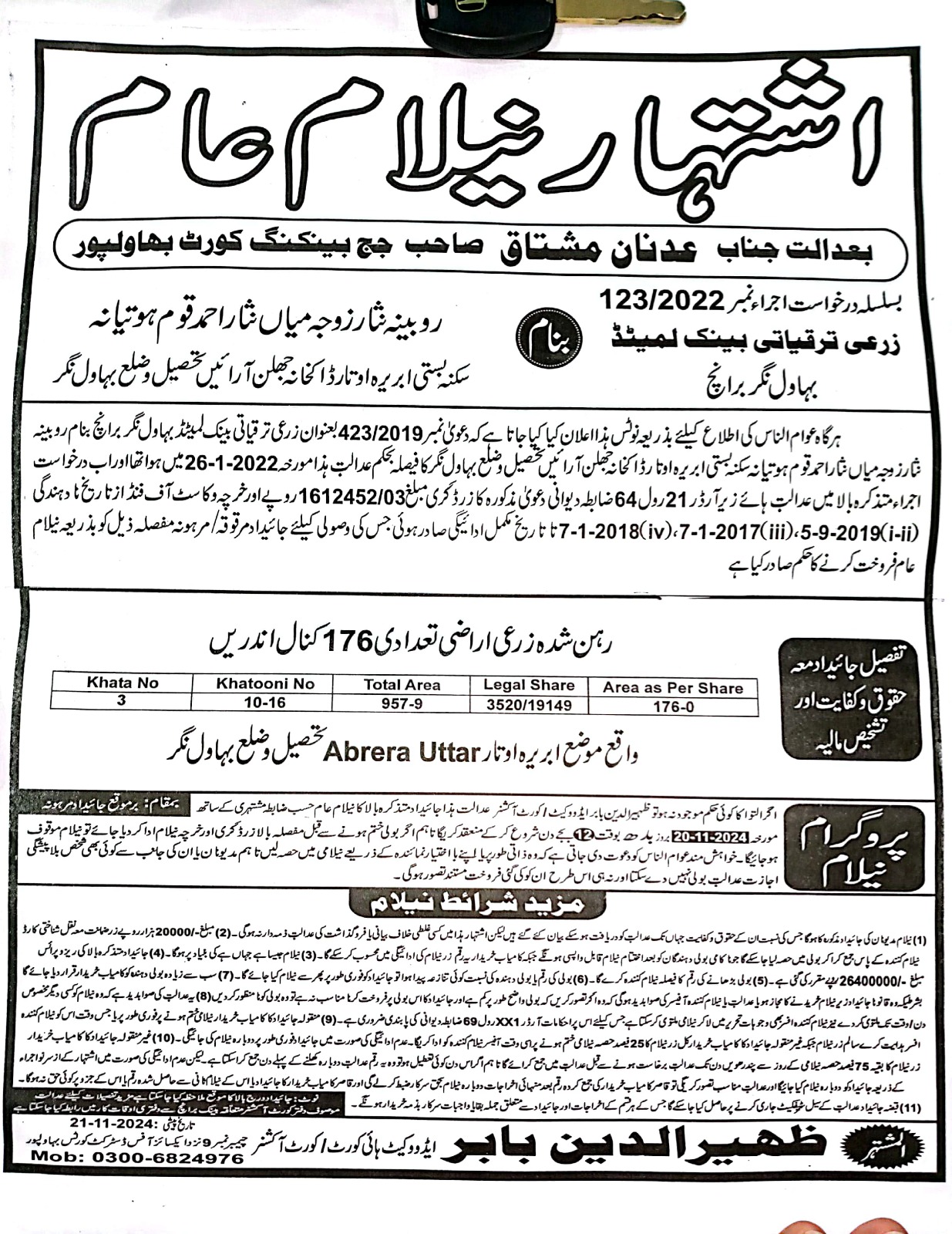 136. ZTBL بہاولنگر برانچ بمقابلہ میاں نثار احمد S/O میاں نصیر احمد [13 مئی 2024]